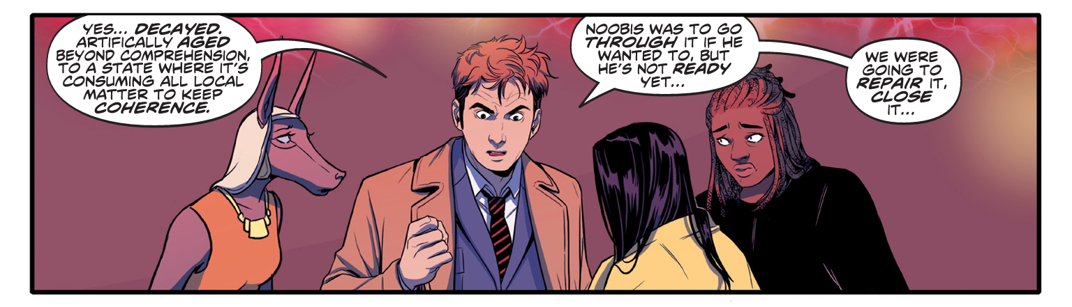 It is interesting that both this and the previous story are about the bad guys shunting people (and in this case dinosaurs) between the present and the past.