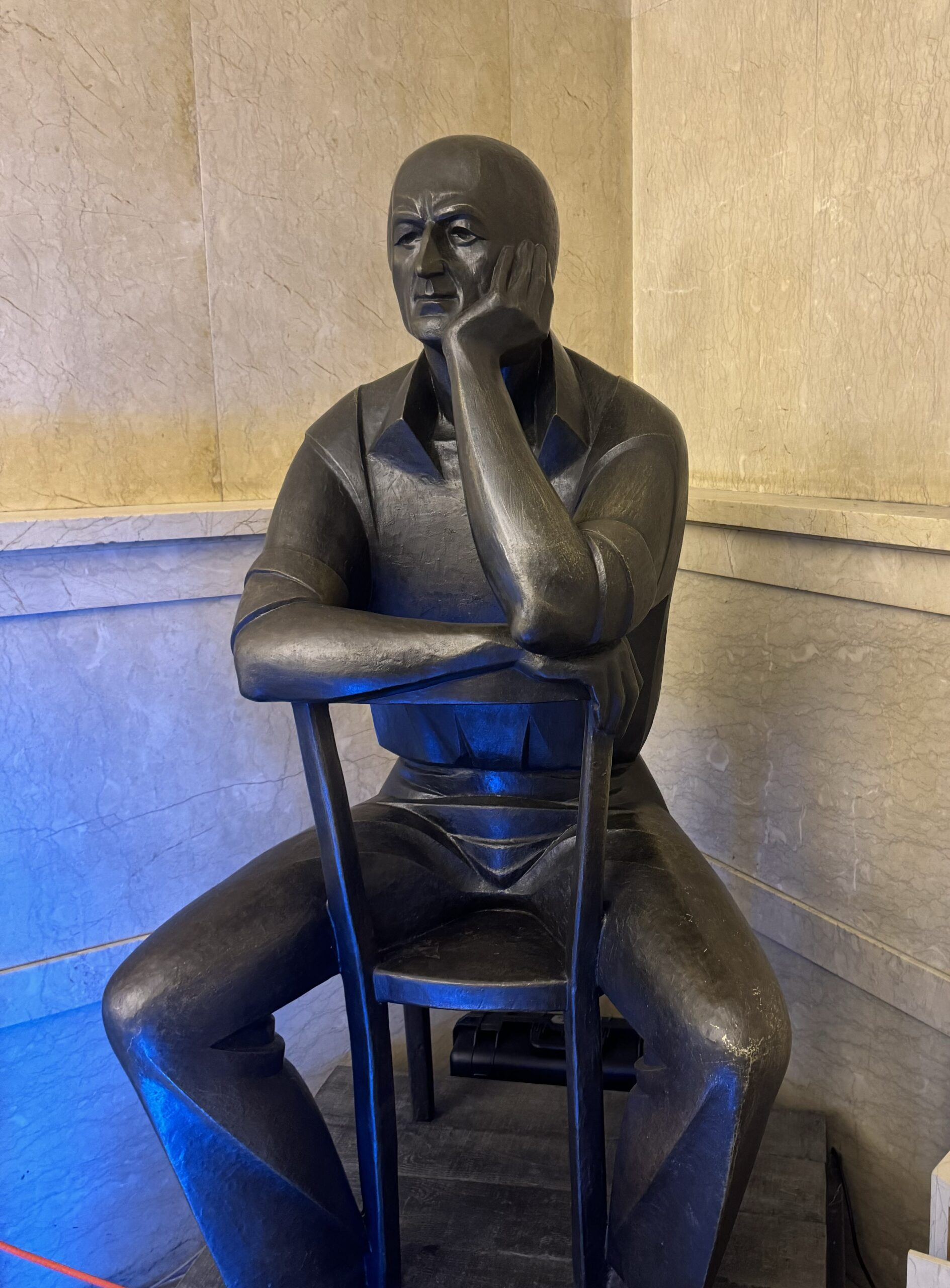 Attending the Paris Peace Forum at the Palais de Chaillot on Monday I found this lovely depiction of actor Jean Vilar (1912-1971), created by his sister-in-law Valentine Schlegel in 1985. Near the entrance, he watches everyone coming and going.