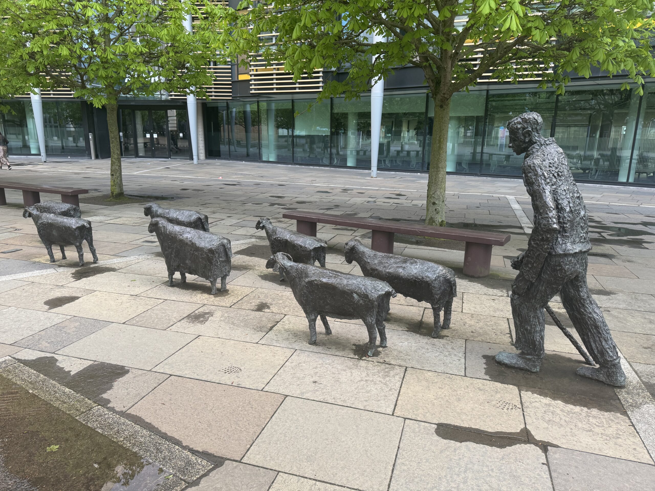 Sheep on the Road (1990), by Deborah Brown, outside the Waterfront Hall next to Oxford Street, Belfast.